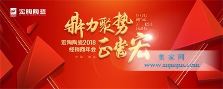 2018年,是宏陶陶瓷全力躍升品牌、贏戰終端的一年,是聚勢騰飛的一年。“鼎力聚勢﹒正當宏”的年會主題,正是詮釋了宏陶在2018年決勝市場的決心。所謂“鼎力”,包括品牌力、產品力、渠道力,三力并舉,打造強而有力的宏陶品牌;“聚勢”,匯聚各方實力,強強聯合、廠商齊心,領導市場流行趨勢;宏陶新品,以匠心制造,甄傳優越品質,2018年“正當紅”。整個年會的亮點,一一貫穿在這三個高度概況的要點上。