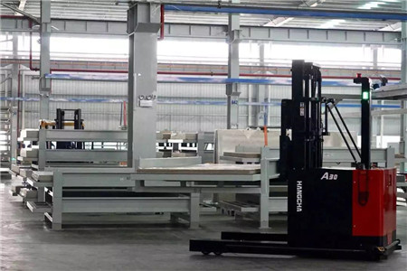 國內第一臺用于陶瓷行業3噸激光導航大噸位升至3米高的智能無人駕駛叉車