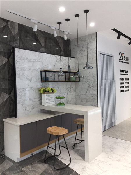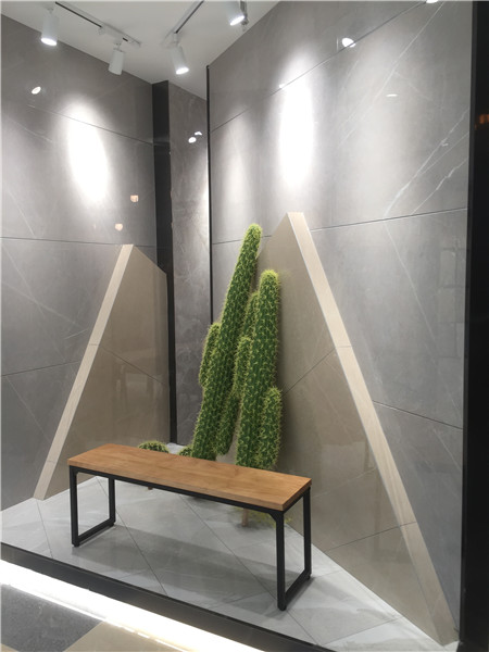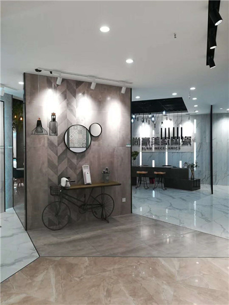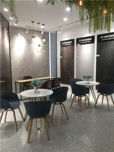 謝金坤:對于展廳的要求是視覺上的干凈有序,呈現了對產品的聚焦導向,同時并不缺少豐富的視覺氛圍。在與總部設計師在設計方案的探討,也是不斷修正,希望在空間的展示上是以人為本的。舒適的光度、簡煉的線條、休閑的氛圍一直是尚豪美家設計總部與我在這個過程中最看重的內容,保持住現代磚低調舒適格調,實現空間與瓷磚元素的水乳交融。最終,現代極簡館呈現出了我們共同期待的樣子,也很感激尚豪美家總部的支持。