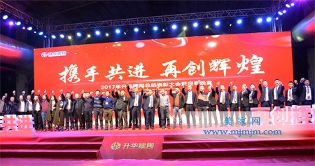 2018年1月22日,升華陶瓷企業總部工廠總結暨迎春晚宴在清遠生產基地盛大召開,企業董事長何標成、企業董事總經理陳偉強、企業董事何仕坤、企業總經理張蜜敬、企業副總經理曾廣清、升華營銷總經理張飛、副總經理武文俊、彭丹以及生產基地和營銷中心2000余人歡聚一堂,共賀新春。