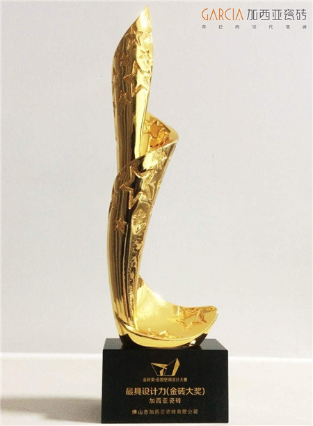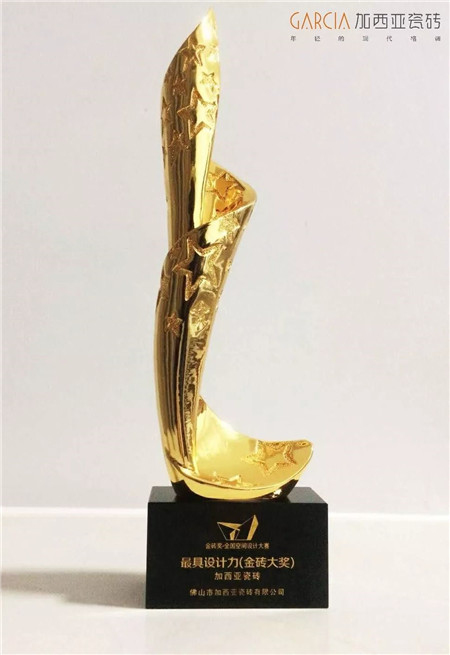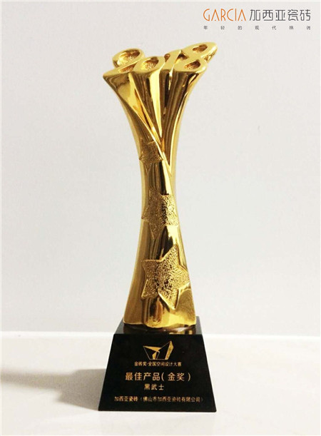 在本次頒獎盛典上,加西亞瓷磚憑著質感強烈的頂級原創設計,受到金磚獎評委的高度評價及行內外人士的認可,一舉獲得“最佳產品金獎(黑武士)、最具設計力金磚大獎”兩大獎項!