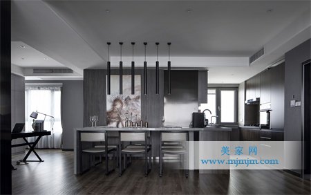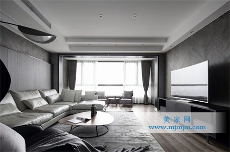 本案業主喜歡簡潔的黑白灰空間,深灰色背景,沒有多余的造型,客廳柜子增加整體儲物空間。趙無極現代裝飾畫點亮空間,開敞式廚房的設計,使整個空間更加開闊,更好的利用了自然采光。淺色沙發與深色背景的對比使空間看起來更加明亮,配合著頂固現代門讓整體更統一。衛生間不同于傳統墻磚的拼貼,做了不一樣的設計,使兩種規格的墻磚豎向鋪貼,更加有趣。