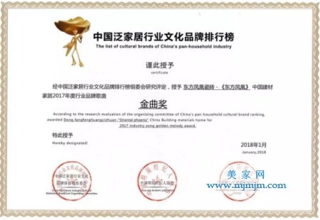 (《東方鳳凰》獲中國建材家居2017年度行業(yè)品牌歌曲金曲獎)