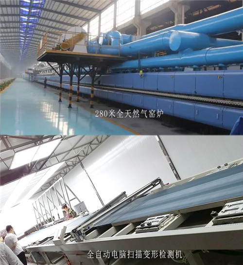長達280米全天然氣窯爐,成形至燒成330分鐘。業界多為普通窯,窯長300-400米,成形至燒成120-150分鐘。