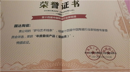 “羅馬藝術線條”獲國家專利,是國達陶瓷多年來堅持“國之精品 達至天下”的品牌理念,以“好瓷磚,國達造”的自信,堅持不斷創新的結果;另一方面,更是充分彰顯了國達陶瓷的創新實力處于行業領先地位,并已形成強大的技術競爭力。在未來的市場競爭中,技術力將轉化為更為強勁的品牌發展力,推動國達陶瓷不斷走向更大的輝煌!