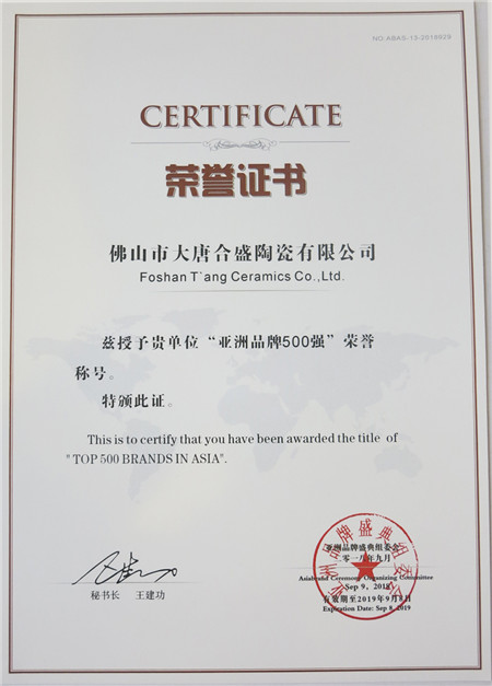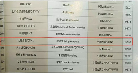 ▼▼▼第13屆亞洲品牌500強(qiáng)——大唐合盛瓷磚品牌排名單