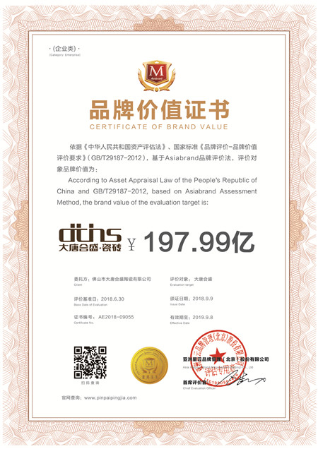 ▼▼▼大唐合盛瓷磚品牌榮譽證書