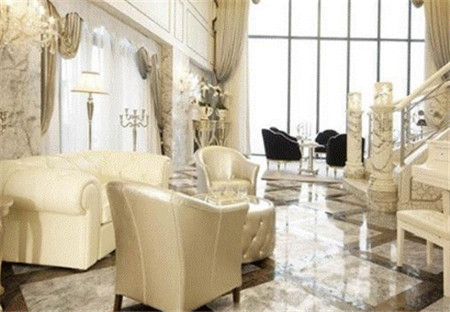 大理石瓷磚準確而言,應稱為仿大理石瓷磚,紋理、色彩、質感、手感以及視覺效果完全達到天然大理石的逼真。優質大理石瓷磚拋光面具有鏡面一樣的光澤,能清晰映出景物,顯得空間通透明亮,淺色大理石瓷磚映襯的整體空間更加潔凈,深色瓷磚則可襯托出空間的立體感、時尚感。