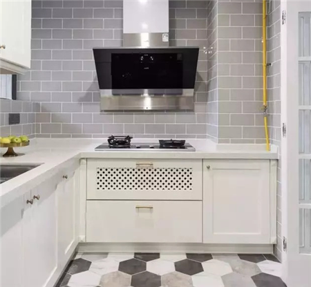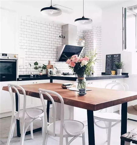 在以往的裝修中,廚房一般都是大塊大塊地貼大磚,墻面地面都一樣。而時下年輕人,更偏向文藝和小清新的風格,其實貼小磚,也別有一番風情。