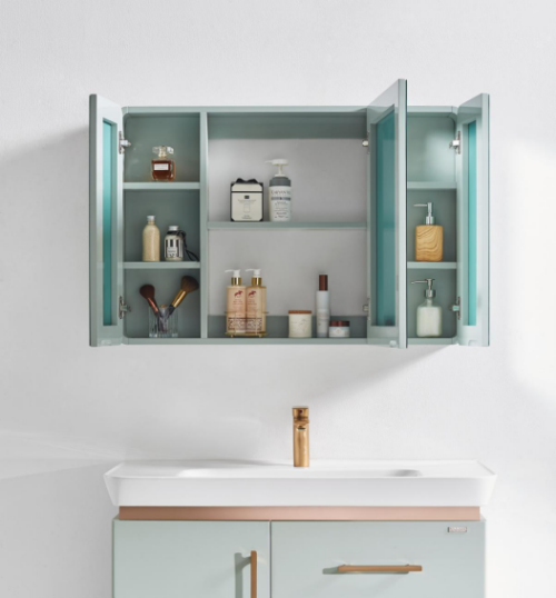 或許你會擔心說打開柜子不就不能照鏡子了嗎?沒有關系,我是一個不僅卸妝化妝,就連刷牙都要盯著鏡子里的自己仔仔細細刷的人,怎么會忽略掉這點呢?鏡柜是三開門設計,左右兩邊的小格子都擁有能單獨打開的門,中間的鏡子仍然可以完美的映照出我精致的臉。不過這邊就要建議,鏡柜中間的格子里可以放置一些儲備物品,最好不需要頻繁使用的,或是備用的毛巾牙刷之類。