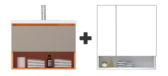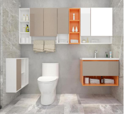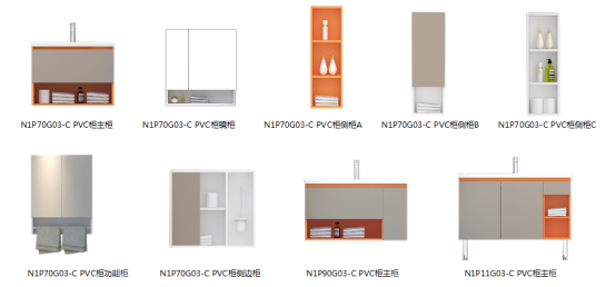 以安華衛(wèi)浴-香橙星空為例,它分為主柜、鏡柜、側(cè)柜、功能柜,9款不同尺寸的部件由自己隨心組合。