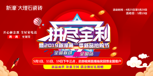 新濠大理石瓷磚“拼盡全利”2019新濠第二季新品搶購節全國聯動啟動會將在4月17日于新濠大理石瓷磚全球營銷中心舉行。