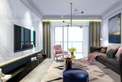 而幾何設計感的地毯、以及個性裝飾掛畫,則更加豐富了空間的層次感。巧妙的“加法”裝飾法則,讓整體空間豐富飽滿。