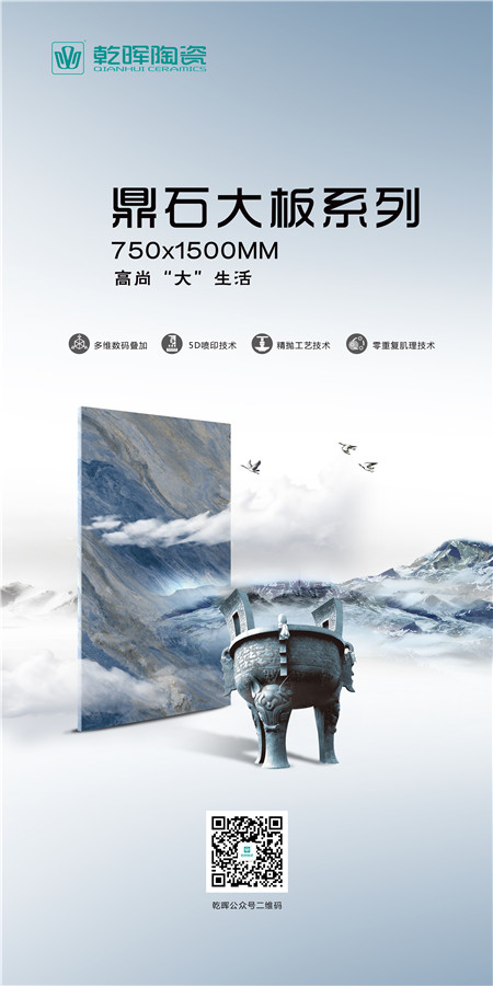 而乾暉陶瓷最新推出的鼎石大板750x1500mm