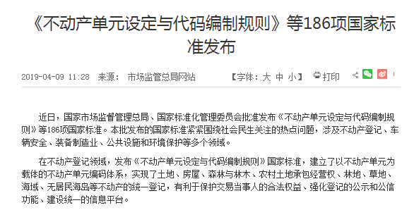市場監管總局:《不動產單元設定與代碼編制規則》國家標準發布,實現土地、房屋等不動產的統一登記
