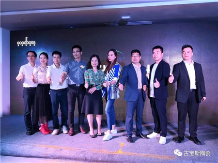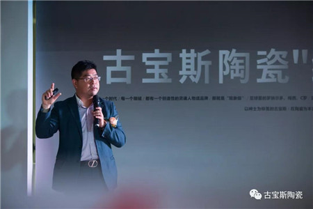 對于一個新的事物,視覺效果是我們最直觀的認知。為此,古寶斯陶瓷市場部總監王海強也在現場解說了新logo的含義。他談到,“Goodboss”高度貼合了古寶斯陶瓷優秀基因下的首腦文化本源,logo以“O”這個穩固的形態作為整個隊伍的基礎,彰顯了企業的厚重;“db”高挑的形象設計展現了現代紳士從容、優雅、積極的風度與精神,從整體展現了古寶斯穩固卻不失紳士風度。