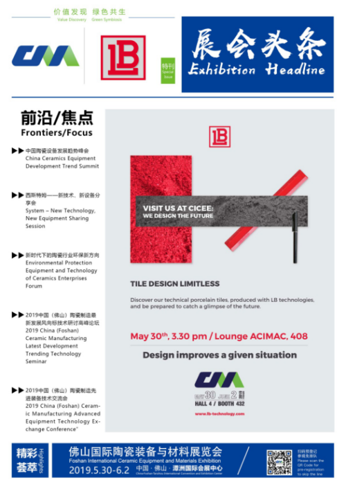 5月30日-6月2日,在佛山陶瓷裝備材料展上,LB還將展出120x240cm的世界首件使用干法制粉粉料的大板。該大板是采用由最具創(chuàng)新性的干法制粉Migratech 4.0 系統(tǒng)的粉料制造,其功能將在現(xiàn)場進行介紹。