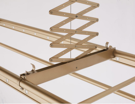或許有人會疑惑,晾衣機的鉸鏈看起來有些細,它真的能承受住初春厚重衣物的挑戰嗎?航空型材可不是擺設,冬日的滴水衣物對它來說都是小意思啦,而特意設計成“X”字型的鉸鏈防風抗擺,再大的風都不必擔心衣服被吹跑。