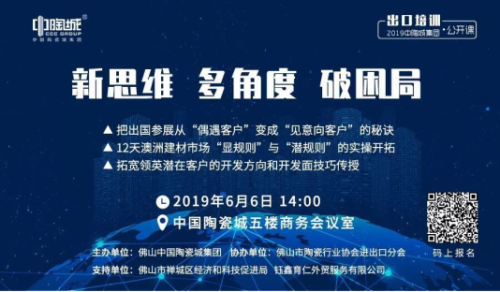 6月6日中陶城出口培訓蓄勢待發,開拓海量客戶的學習機會就在眼前,還在猶豫的外貿小伙伴們可千萬別掉隊了呀。