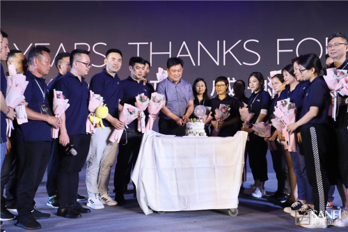 晚會(huì)溫情策劃"10年+,興輝感恩有你"特別環(huán)節(jié),邀請(qǐng)與興輝肩并肩一起奮斗10年以上的經(jīng)銷商們和員工們一同上臺(tái),并由興輝新人為他們獻(xiàn)上寓意“初心”的粉紅玫瑰。作為興輝大家長,柯總也深情流露,感謝他們與興輝同行十余載,不忘初心,用最青春的10年,最珍貴的10年,成就今天的興輝。最后眾嘉賓與柯總一起切蛋糕,共同祝愿更美好的下一個(gè)十年,二十年......