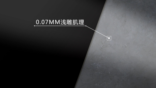 “盧卡·淺雕紋”對比于市面上類似的產品,形象的比喻一下就是相當于標清的視頻畫質對比4K高清視頻畫質。普通產品只是在簡單的紋理和大紋理上做出精細度不到0.5毫米的處理工藝,而且立體肌理與紋理的結合度不高,肌理粗狂。
