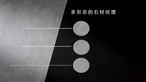 “盧卡·淺雕紋”產品系列紋理采用的是意大利經典的“佩利諾灰”石材紋理,紋理細節豐富而自然,是流線型、團紋、裂紋等多種紋理的有機組合。目前市場上的其他產品只有流線型、團紋、裂紋其中的某一種紋理,整體視覺顯得相對單一,乏味。