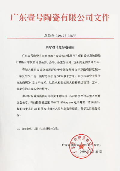 壹號大理石瓷磚《招標邀請函》文件