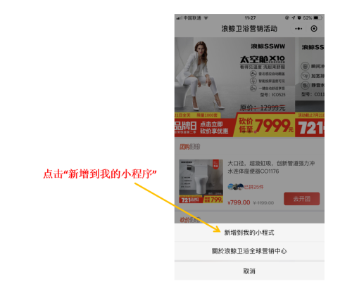 即可進入“浪鯨衛浴全球營銷中心”小程序