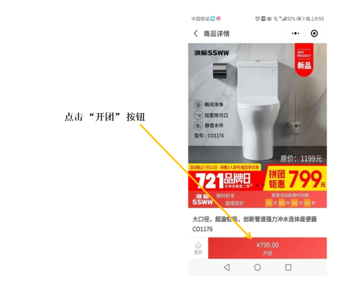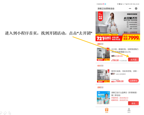 點擊“去開團”參與團購活動