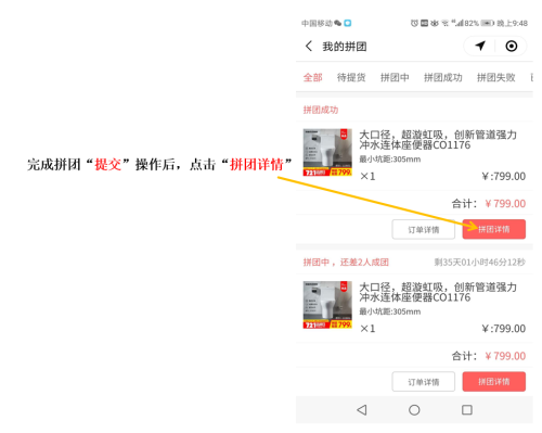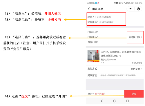 拼團成功后,即可到店交款提貨
