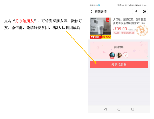 滿3人即拼團成功,好友無需重復開團。