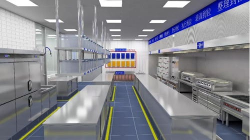 此外,我們還融合先進的4D廚房現場管理理念,在廚房設計與工程建設階段就按照高標準、嚴要求打造可以讓人參觀的廚房。而且,我們還運用3D技術和VR技術,立體展現廚房空間,并720°全景動態呈現作業場景,讓廚房所見即所得。