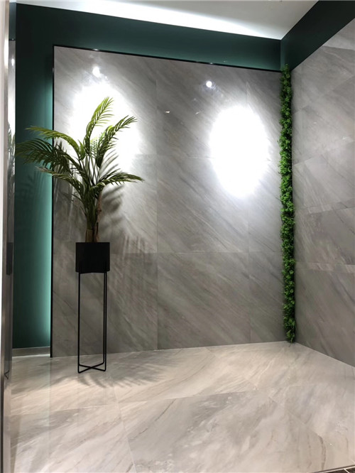 這是我們的前臺(tái),背景墻由灰色通體大理石KA9M009羅馬布里卡通鋪,把木紋條作為空間的間隔,前臺(tái)選用白色鑲嵌銀色大理石紋,整個(gè)空間散發(fā)著簡(jiǎn)潔優(yōu)雅的氣息。凸顯簡(jiǎn)約的品牌定位。您家地磚和背景墻同樣適合選用這款磚。