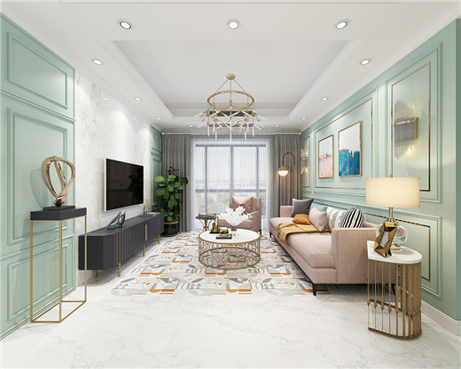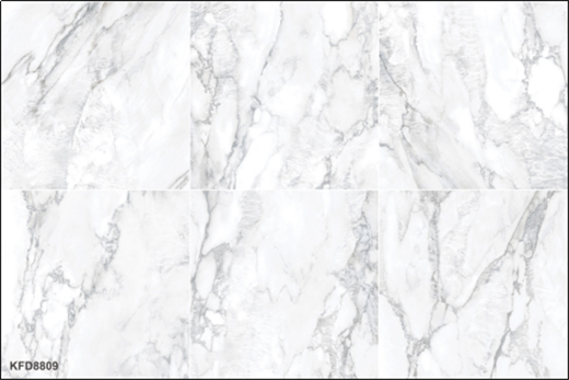 白色素凈潔雅,淺灰色網紋無規則,讓瓷磚接近天然大理石的紋理質感,山脈蜿蜒無邊,帶著部分結晶玉石團紋,更顯自然之美。