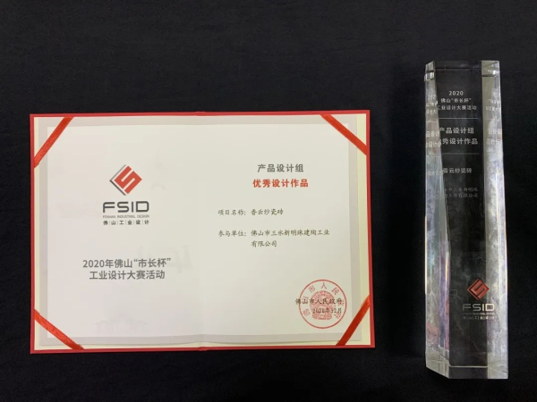 在開幕活動上,主辦方對獲得2020年“市長杯”工業設計大賽的優秀作品進行表彰,并頒發“市長杯”扶持項目榮譽證書和獎杯。其中,由新明珠陶瓷集團研發的智能石墨烯多功能發熱餐桌榮獲概念設計組“優秀創意作品”、“CMF(材料)類創新作品”;香云紗瓷磚榮獲產品設計組“優秀設計作品”、“CMF(材料)類創新作品”,再次證明了新明珠強大的產品研發創新能力。