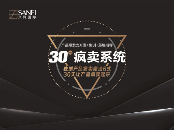 30產(chǎn)品瘋賣系統(tǒng)是興輝國際攜手黑蟻營銷針對“尖刀產(chǎn)品”策略合作定制的專項項目,從產(chǎn)品本身出發(fā),在項目中挖掘產(chǎn)品獨特賣點優(yōu)勢,打造專業(yè)的銷售話術和激勵系統(tǒng),形成專屬于興輝國際的產(chǎn)品邏輯,幫助終端經(jīng)銷商收獲更大市場。